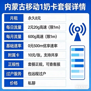 救命!内蒙古移动出王炸奶卡,永久8元月租太香了谁还在为手机流量焦虑?谁还在花大几十上百块交月租,结果流量不够用、限速还早?今天给大家挖到宝了——新到内蒙古移动1
